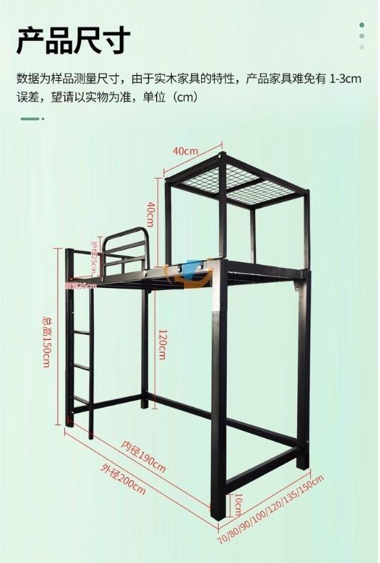 小戶型高架床鐵藝半高架床組合加厚加密成人員工床 w7611