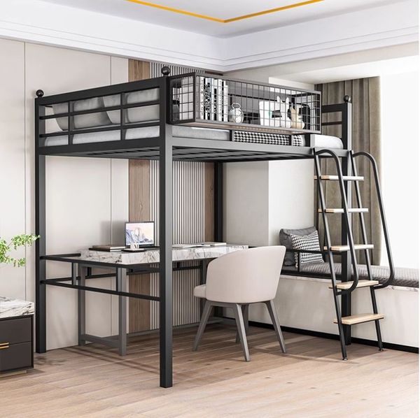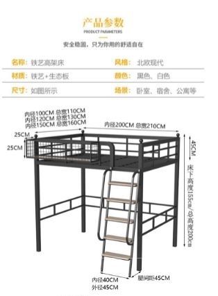 鐵藝二樓上下鋪公寓上床下桌小戶型高架床單上層空複式閣樓床 #w7613