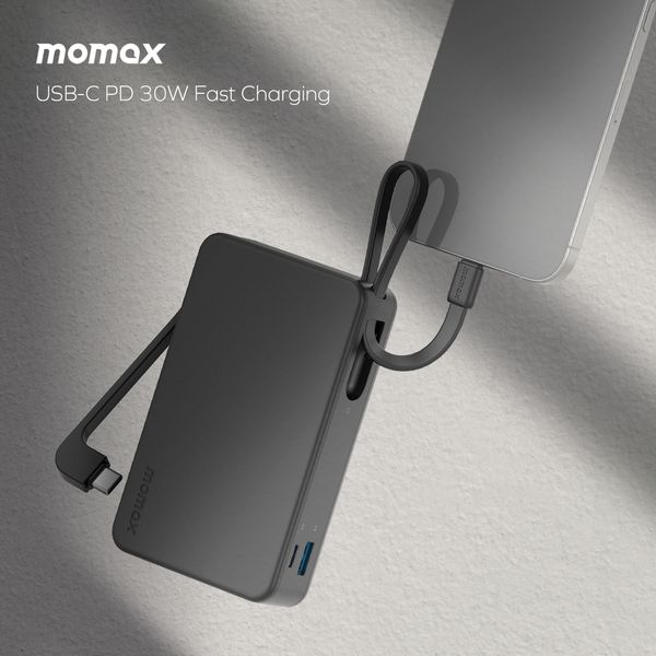 MOMAX 1-Power Vital+ 20000mAh 行動電源,內建雙 USB-C 線 (黑色) IP139D