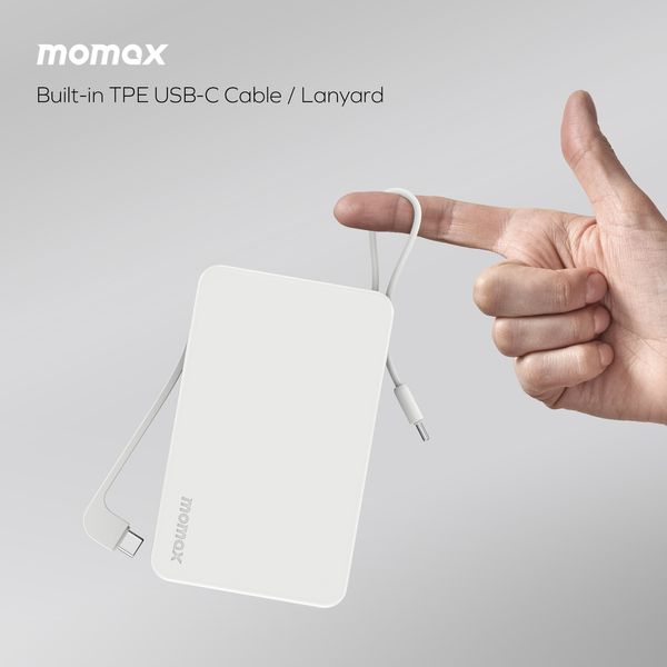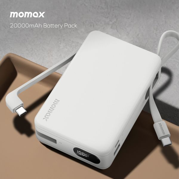 MOMAX 1-Power Vital+ 20000mAh 行動電源,內建雙 USB-C 線 (白色) IP139W