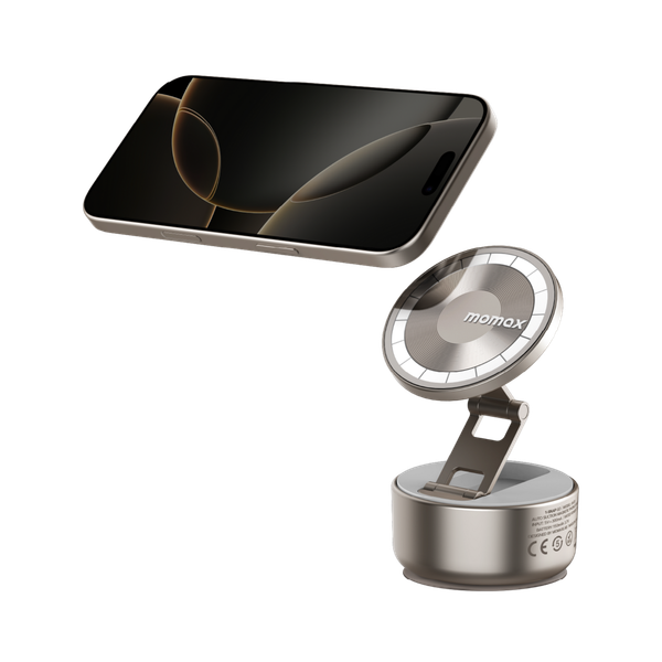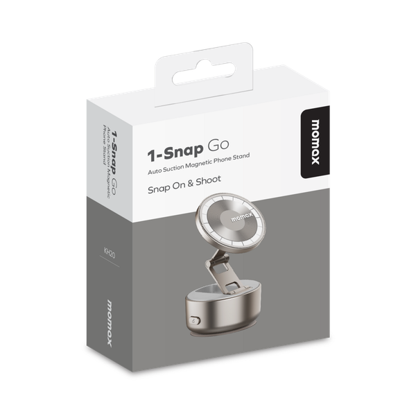 1-Snap Go 採用可折疊的緊湊設計,可輕鬆放入您的口袋、包包或手提包中。別被它小巧的體積所迷惑;這款支架配備強大的電動吸盤,能夠牢牢吸附在任何平整光滑的表面,並保持穩定。