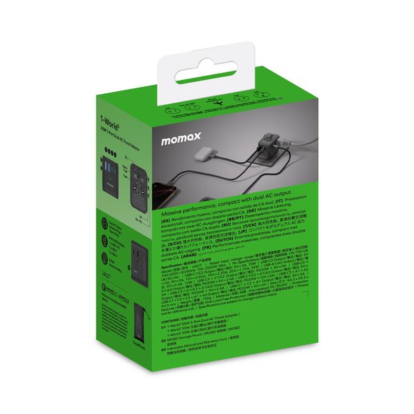 1-World² 相容於 180 多個國家/地區,確保用家保持連線。其巧妙的設計配有通用插頭和USB-A 插頭,無論用家去哪裡冒險,都可以同時為最多兩個 AC 設備充電。