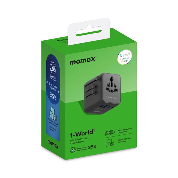 1-World² 35W 五接口旅行充電插座 - 用家在世界任何地方輕鬆充電的終極伴侶。無論用家是常旅客還是偶爾旅行者。