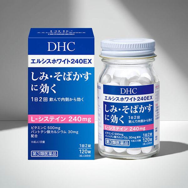日本𣈱銷品牌 DHC 出品,只供應國內的「ELSYS WHITE 240EX 超級美白去斑丸」是一款含有 L-半胱氨酸(L-Cysteine)的製劑,專為改善皮膚代謝及淡化色斑設計。該產品配方中每成人每日劑量含有 240毫克的 L-半胱氨酸,為 DHC 史上最大配量,能有效促進皮膚新陳代謝,排出黑色素,並防止色素沉著。