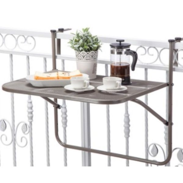 戶外露台折叠枱- 花盆架置物架陽台鐵藝置物架金屬折疊掛式收納架陽台休閑桌村屋(T0200)