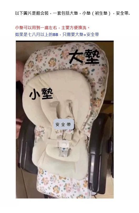 (套裝: 大墊/小墊/安全帶一$420)