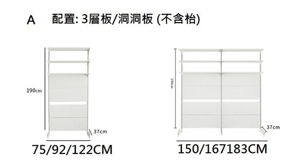 洞洞板37CM深 / 高190CM/ 配置: 3層板/洞洞板