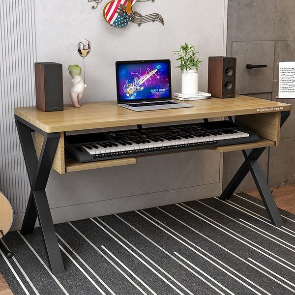 拉屜式.實木-電子琴枱, 配烤漆鋼架-X型腳架-多尺寸(T1379)