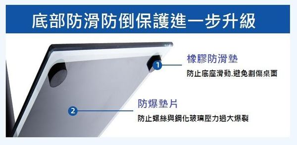 橡膠防滑墊防止底座滑動.避免劃傷桌面