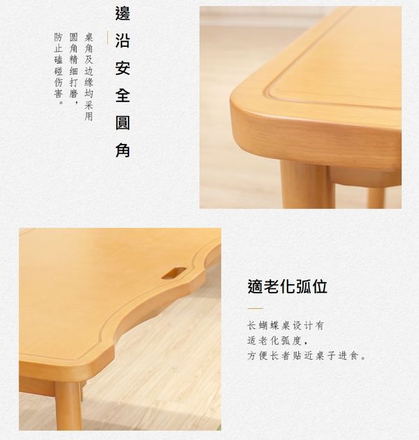 貼心設計. 弧形餐桌邊. 方便長者貼近餐桌.