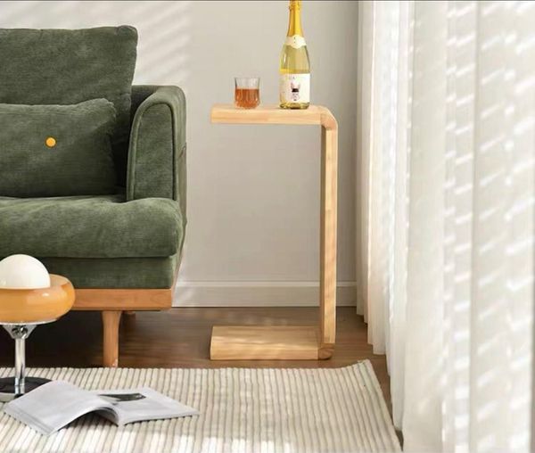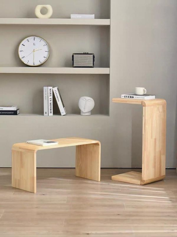 實木可移動窗枱茶几/沙發邊桌C型U形邊幾/邊櫃角幾簡約客廳臥室枱(T3539)