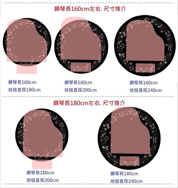 三角鋼琴隔音吸音圓形地毯/專用音符琴房琴行地墊簡約錄音棚(多尺寸)(T3807)