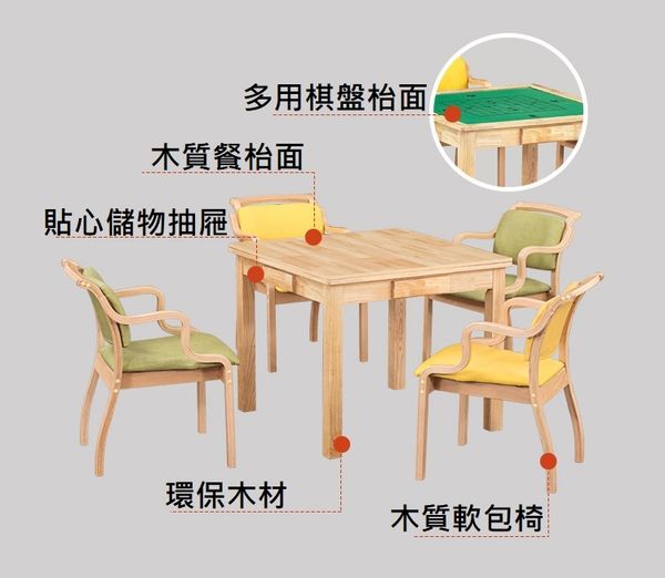 多用途實木枱-(餐枱/麻雀枱/棋枱)-麻雀枱長者.老人院.適老化休閑活動桌日式養老院多功能棋牌桌敬老院餐桌兩用實木方桌棋桌(T5196)
