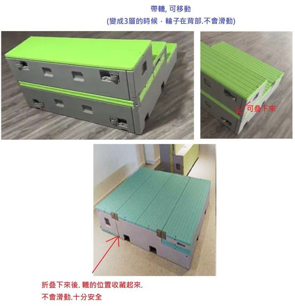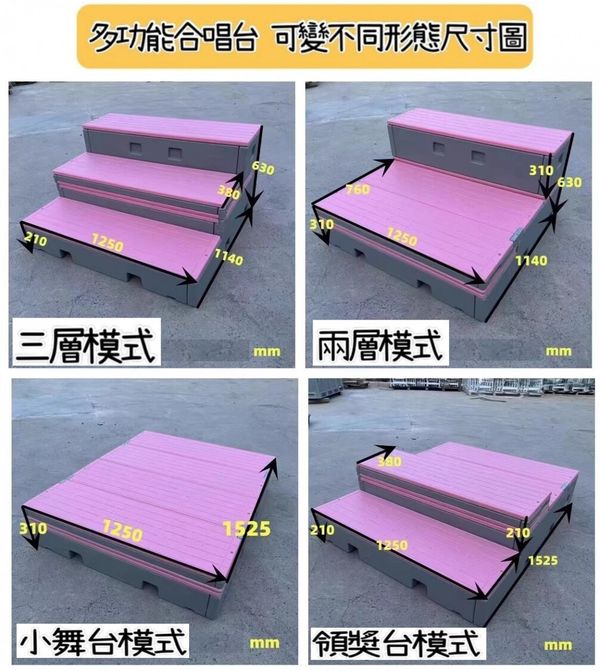 可以任意組合成一平台、兩階或三階的合唱台,連小朋友都能夠方便輕鬆的移動。