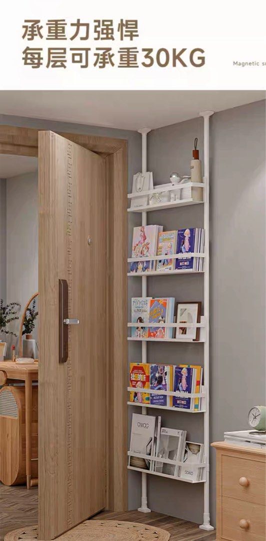 頂天立地超薄門後-置物架(多尺寸)-兒童書架門後窄超薄置物架自由組合頂天立地BB書本繪本收納架(T5607)