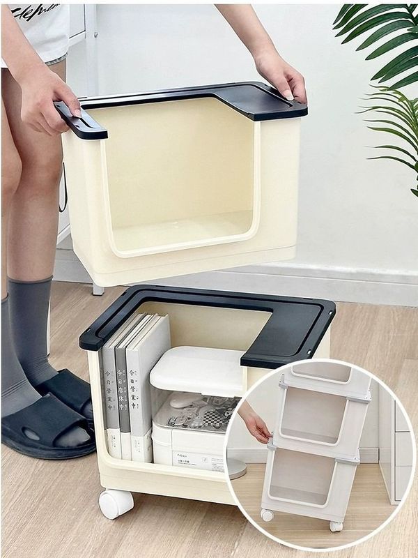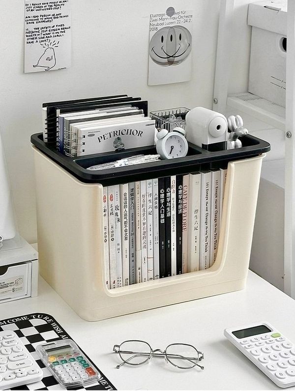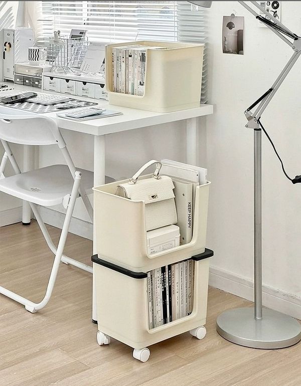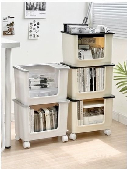 收納箱書箱-學生宿舍書本收納盒大容量裝書籍整理箱子儲物盒筐帶輪(T6228)