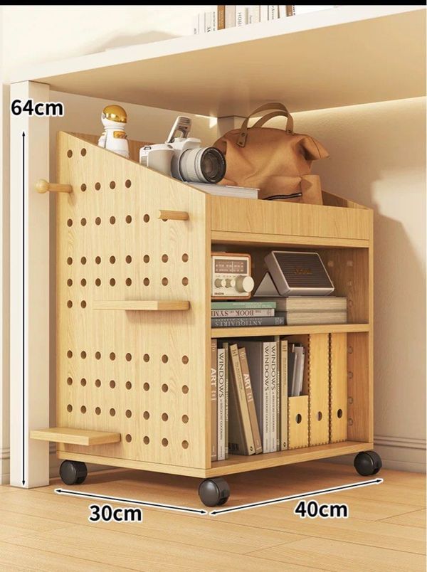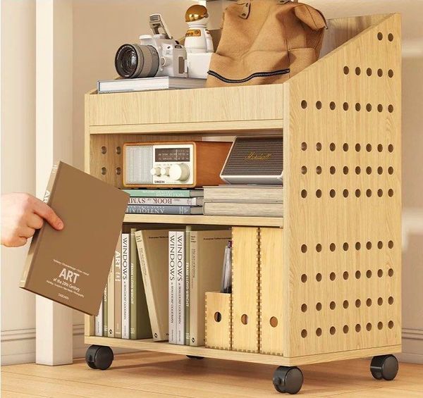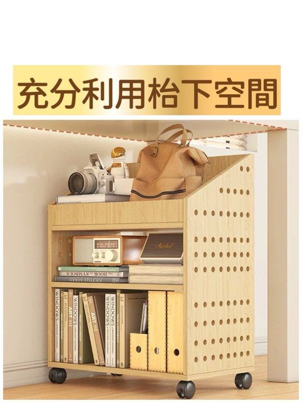 可移動枱底書架(洞洞款)-桌下書架置物架滑輪學生放書包收納盒可移動書桌旁家用書本收納架(T7788)