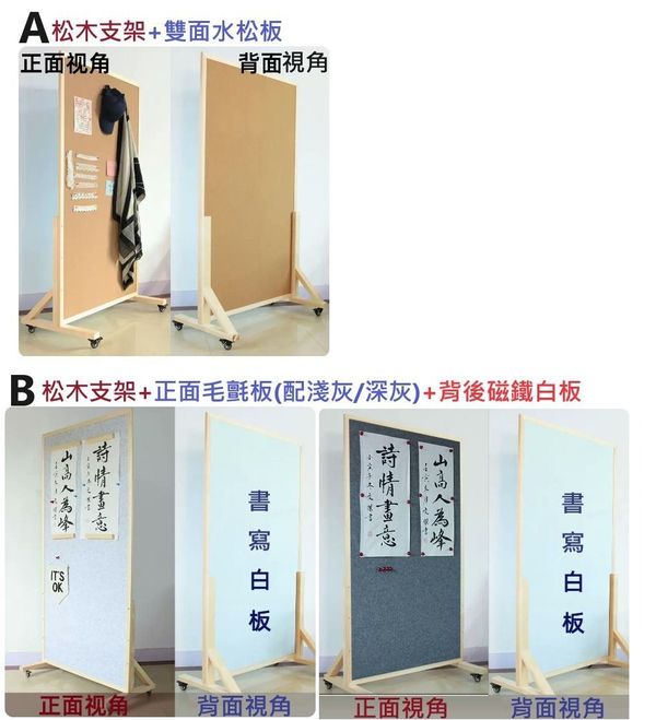 松木支架+毛氈板(淺灰/深灰)+白板