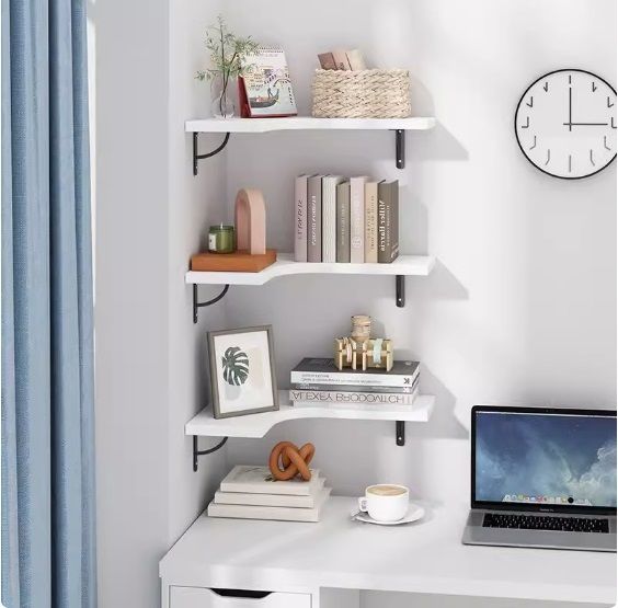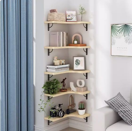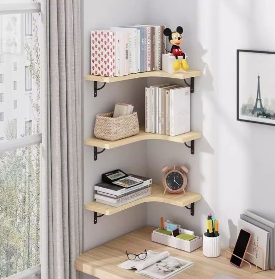 轉角層板--客廳拐角隔板牆上置物架壁掛臥室書桌牆角三角形儲物書架牆面裝飾(U1337)