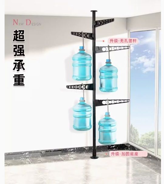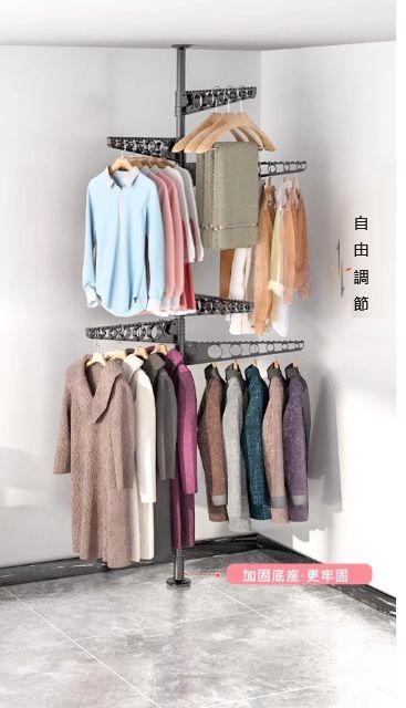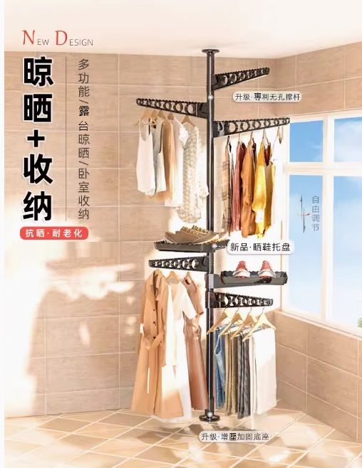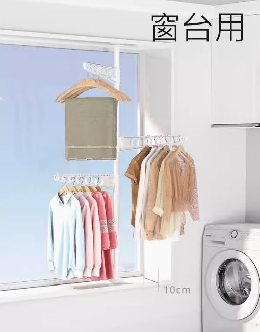 慳位設計-頂天立地落地折疊晾衣架-陽台臥室衣帽架伸縮杆窗台飄窗曬被曬衣架(U1378)