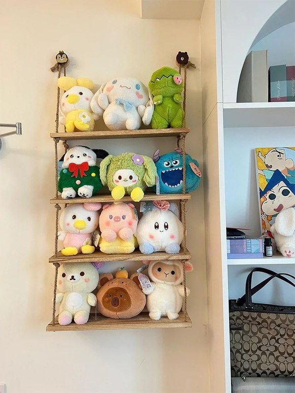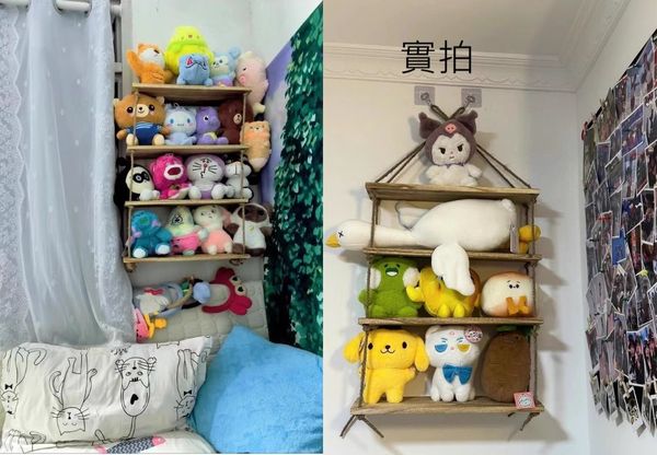 牆上公仔收實木納掛架(多尺寸/1層/2層/3層/4層)-毛公仔娃娃玩偶上牆壁掛網兜兒童玩具整理毛絨置物架牆架(U1691)