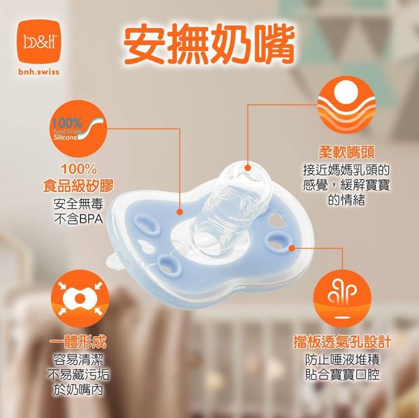 - 柔軟環套設計,方便取出奶嘴且不易刮傷寶寶