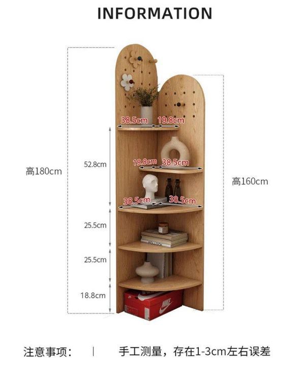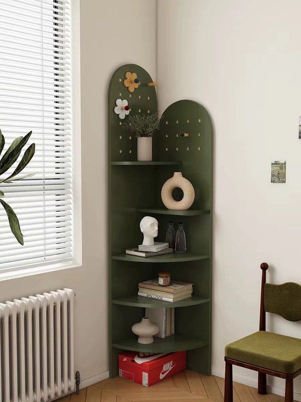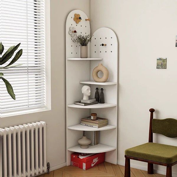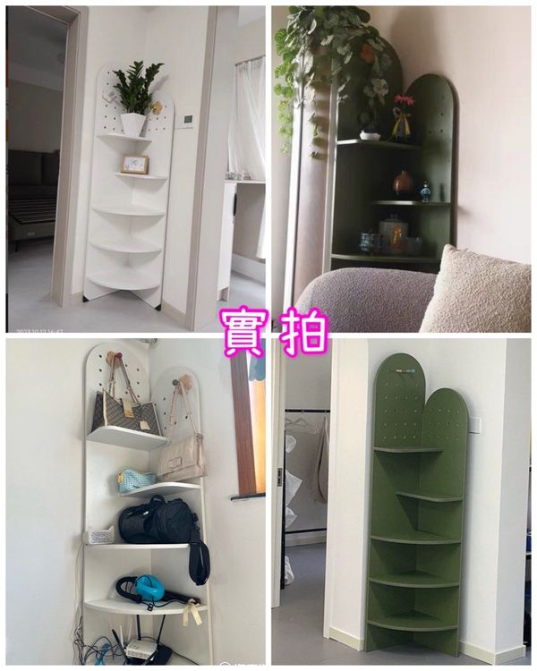 簡約扇形三角櫃-客廳靠牆轉角櫃牆角櫃小戶型家用角落櫃實木轉角置物架洞洞櫃(U1789)