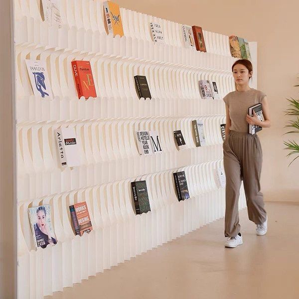 (免組裝)大型書架(多尺寸)-屏風產品陳列架商場置物架折疊隔斷商品網紅紙牆置物櫃書櫃展覽 (U1834)