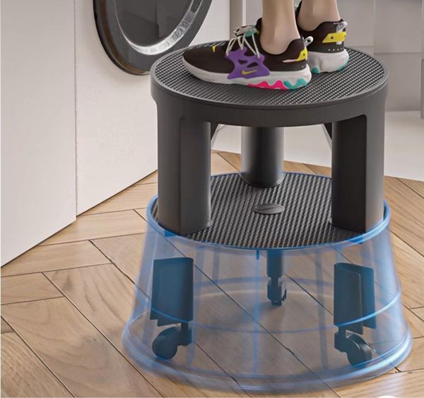圓形梯凳(可移動)-登高凳倉庫理貨凳子腳踏取物萬向輪可移動凳子圖書館梯凳家用梯凳(U2072)