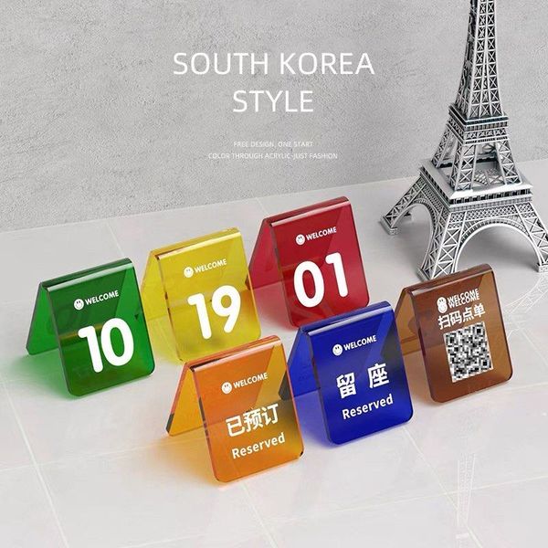 訂做-ins風亞克力雙面數字號碼牌(多色)-掃碼QR Code開餐廳桌上點餐牌咖啡飲料店叫餐取餐牌定制(U2124)