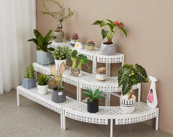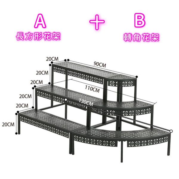 花架置物架(長方形/轉角)-陽台鐵藝階梯落地式多層戶外庭院窗台多肉專用花盆架子(U2253)