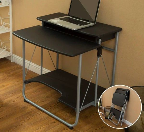 免安裝-可折疊雙層電腦枱-電腦桌小型書桌小尺寸可移動台式桌子省空間學生折疊學習桌(U2343)