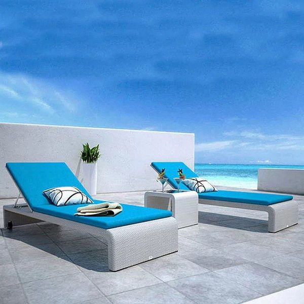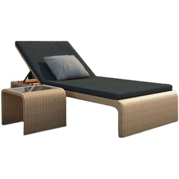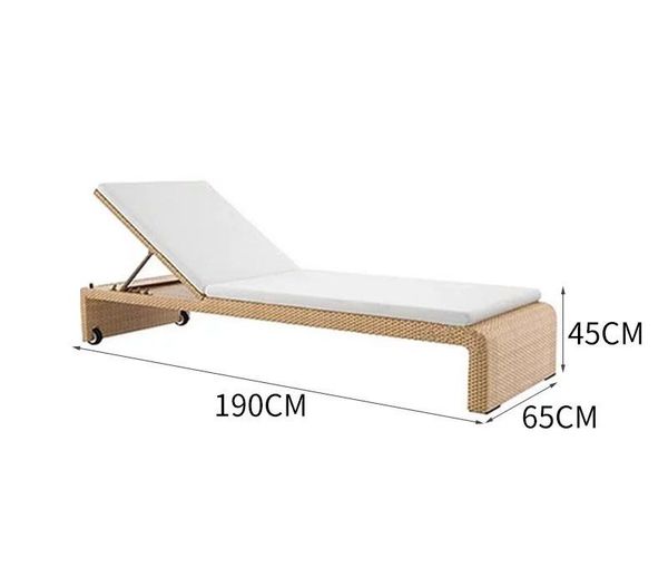 戶外藤編躺床-別墅酒店游泳館海邊庭院泳池防水躺椅陽台休閒沙灘椅(U2378)