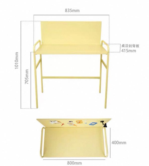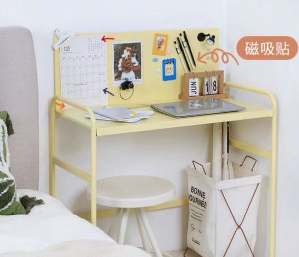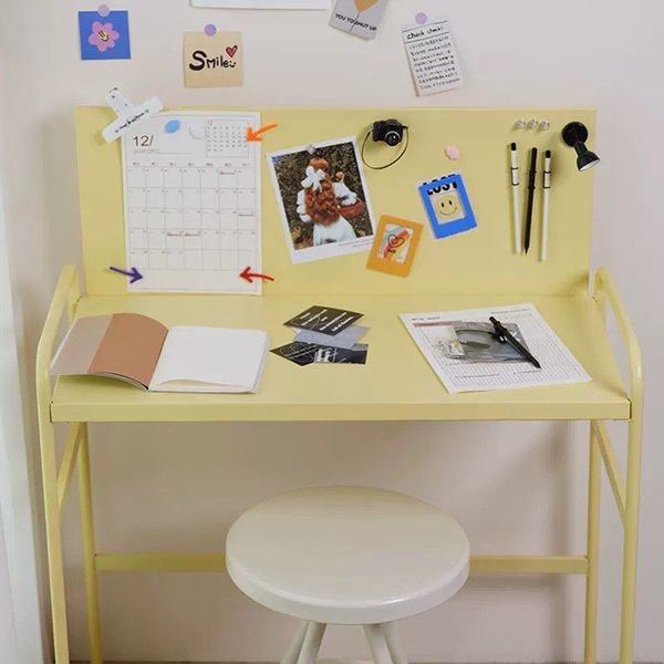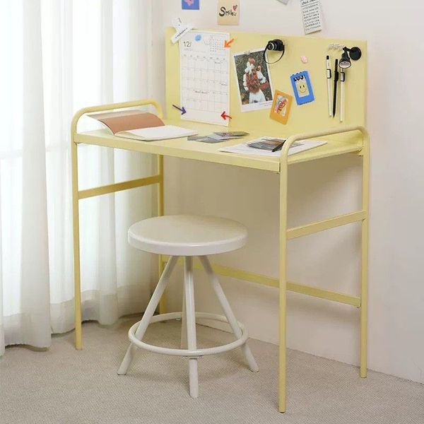 鐵藝書枱-背板可磁吸,小書桌穩固家居奶黃色ins北歐辦公學習桌子書房電腦桌子多巴胺風格(U2460)
