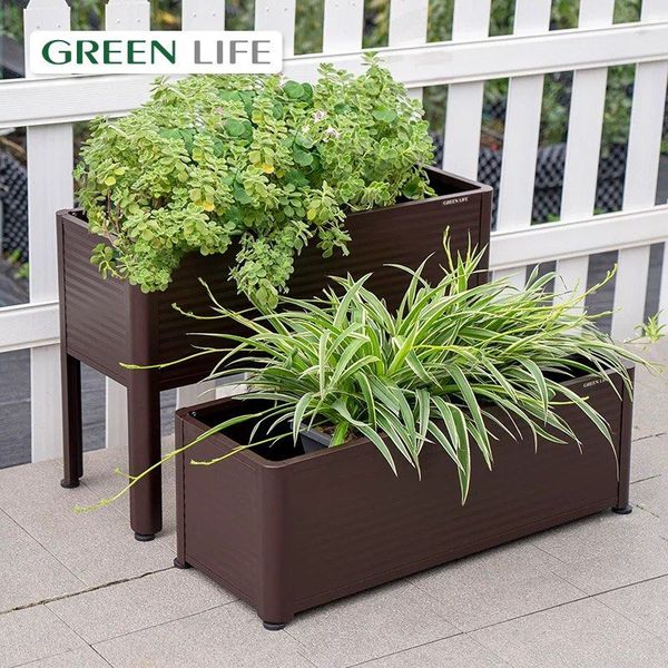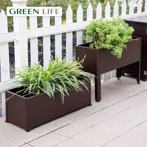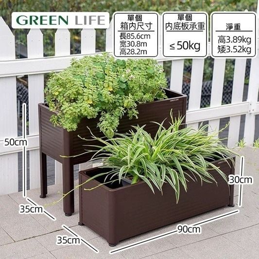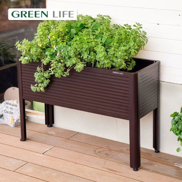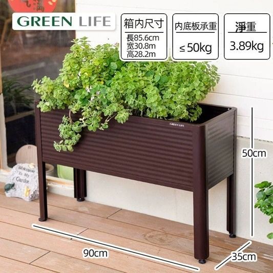 (日本Greenlife)戶外種花箱(短款/高款)-防腐鏽鋁合金花盆露台田園種植陽台種植箱庭院花園花盆種菜長方形露台花槽 (U2499)