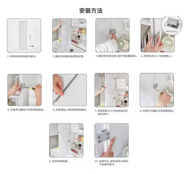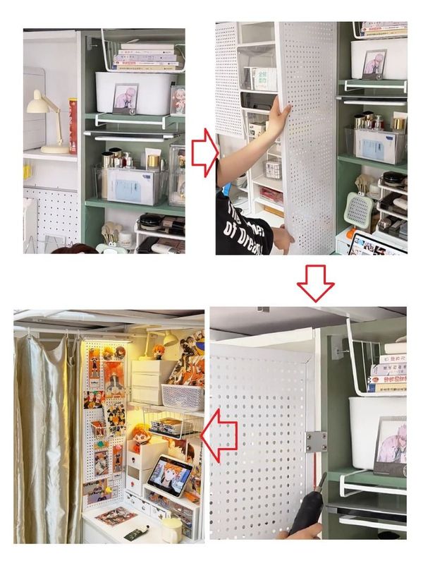 枱面洞洞板置物架作為屏風隔斷,提供隱私,同時具備磁吸功能,
