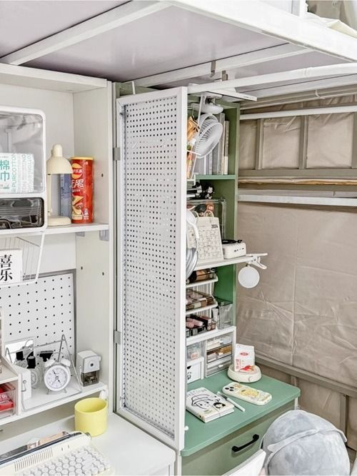 方便收納各種物品。靈活的設計讓空間利用更高效,提升宿舍環境的整潔與美觀。