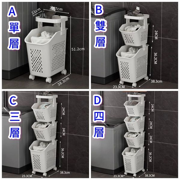 多用途可移動窄身籃(1層/2層/3層/4層)-分類髒衣籃衛生間置物架衣帽分區放衣服髒衣簍收納筐夾縫髒收納架玩具床頭櫃 (U2799)