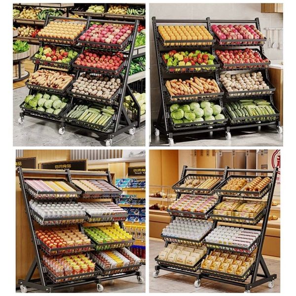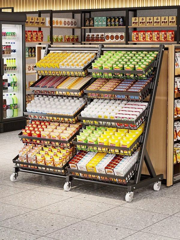 可移動零食貨架(多尺寸)-開店生意貨架超市小食品飲料展示筐架便利店生鮮店加寬推車置物架 (U2941)