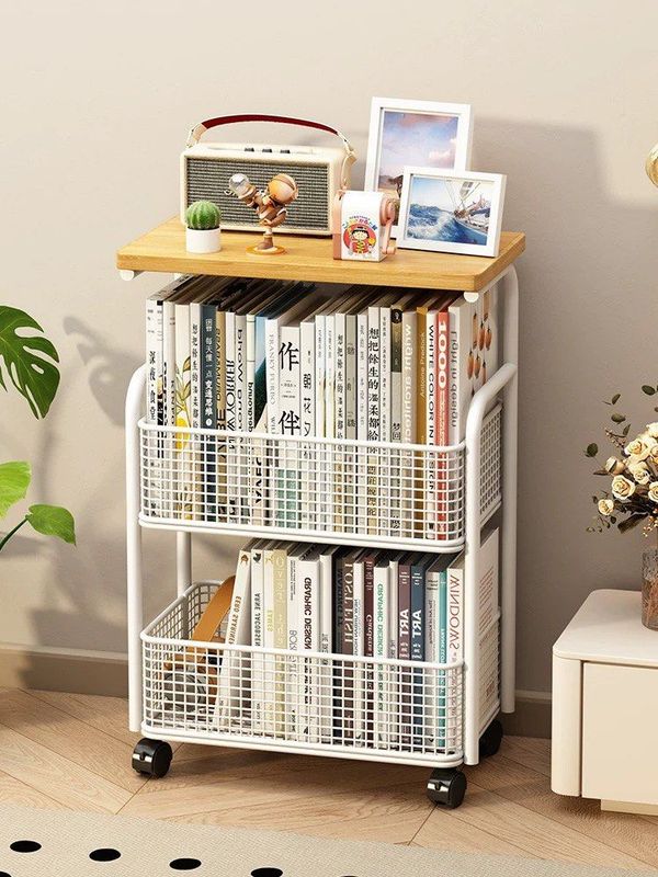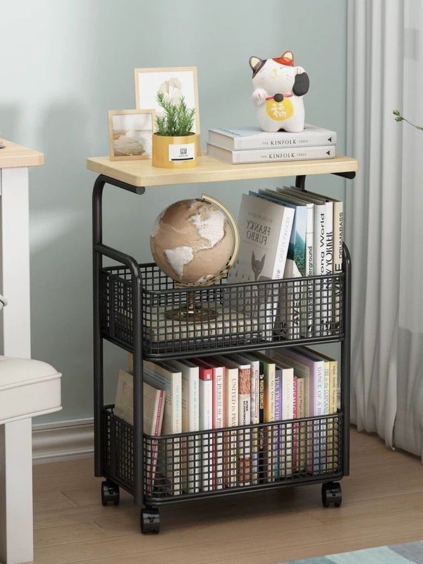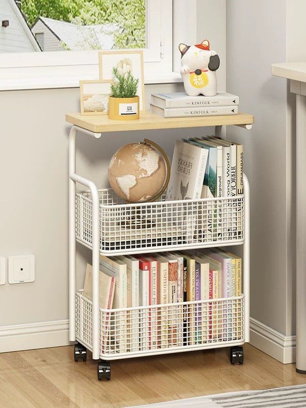可移動枱下書架-桌下書架落地可移動書桌旁置物架辦公桌邊學生書本收納架書櫃帶輪 (U3149)