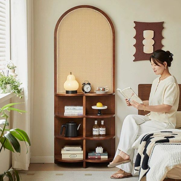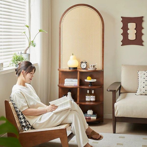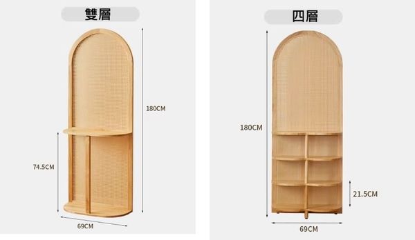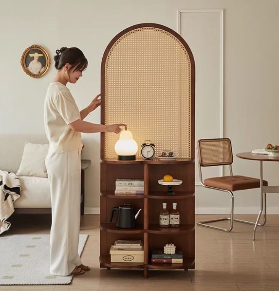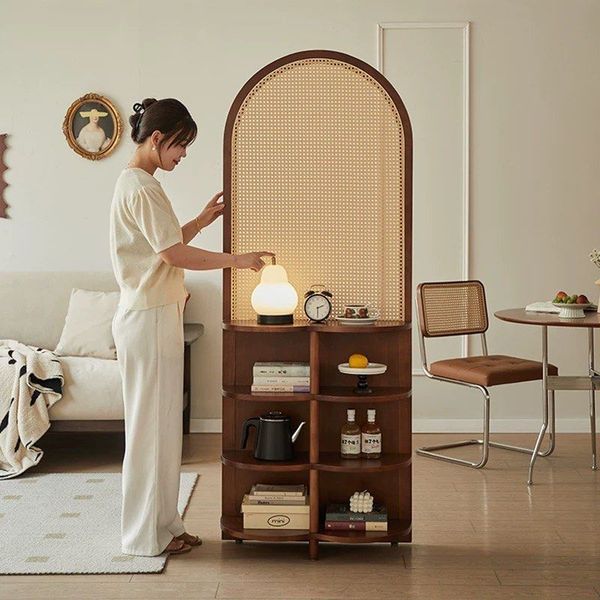 兩用屏風櫃-入戶座屏藤編玄關架現代簡約客廳沙發隔斷屏風中古展示實木置物架(U3942)