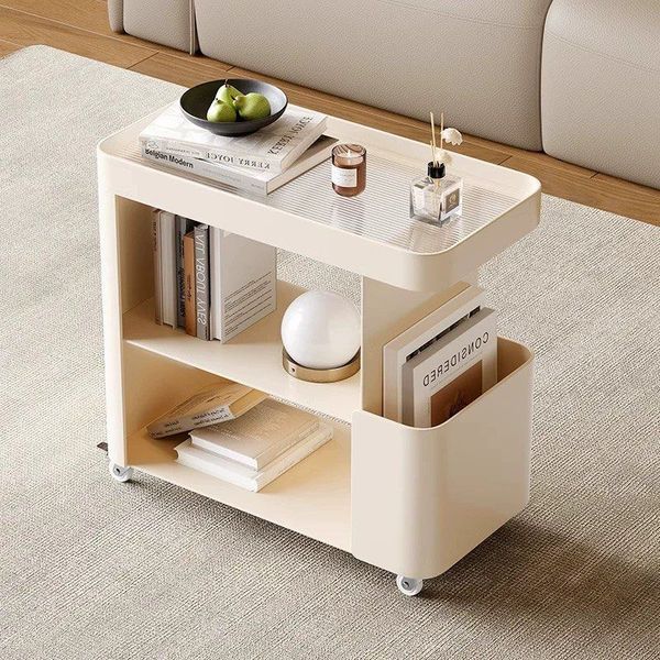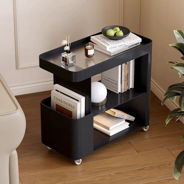 沙發邊幾-可移動客廳小推車鐵藝極窄床頭櫃邊幾收納置物架輕奢高級 (U3954)