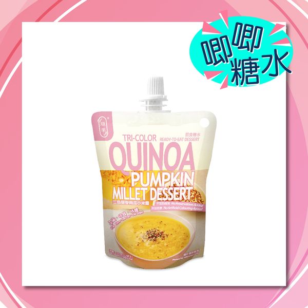 '選用玻利維亞高原區藜麥,含豐富膳食纖維和蛋白質;搭配優質清甜的南瓜及營養豐富的小米;三者的有機結合,成就這款低糖、低脂、高纖的新派即食甜品。150克加咀袋裝、輕便易攜,小包份量剛剛好,元氣滿分。