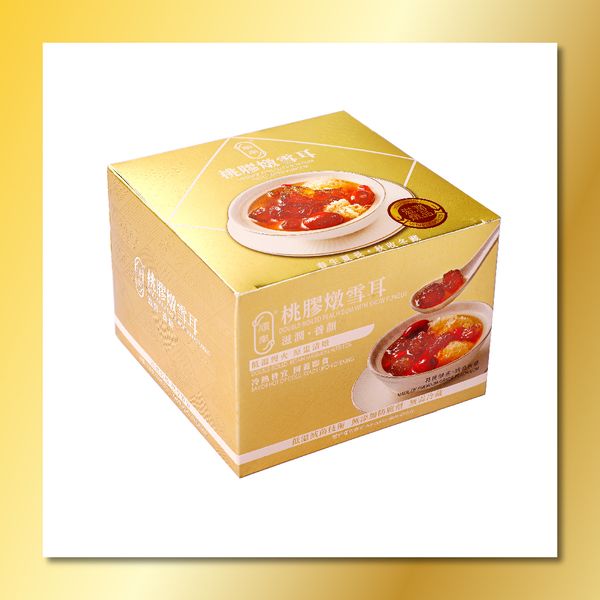 即食糖水,真材實料,不加防腐劑、不加人造色素。 桃膠含有豐富植物膠原,高纖低卡, 銀耳抗氧化,美白護膚,加上寧夏杞子、以文火慢燉,成就這款 養顏糖水,甜度適中, 滋潤美味。
