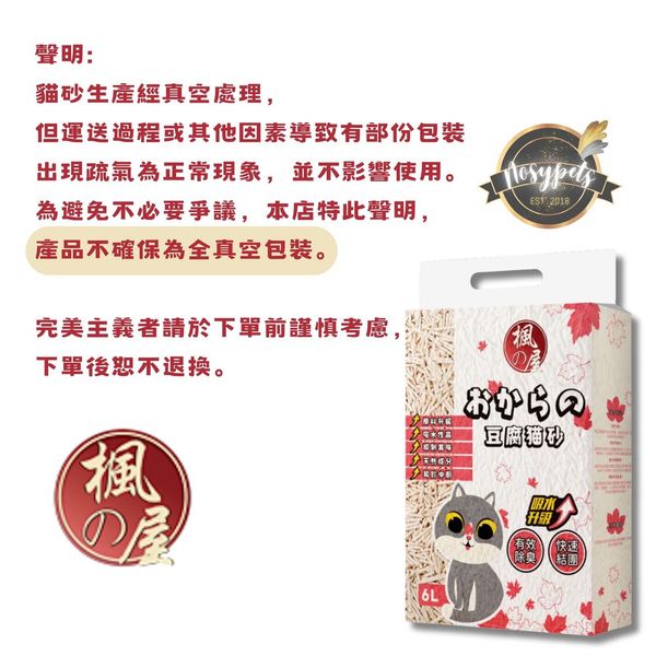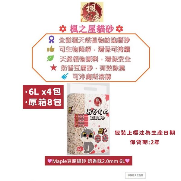 楓之屋 奶香味 2mm豆腐貓砂 6L x4包
