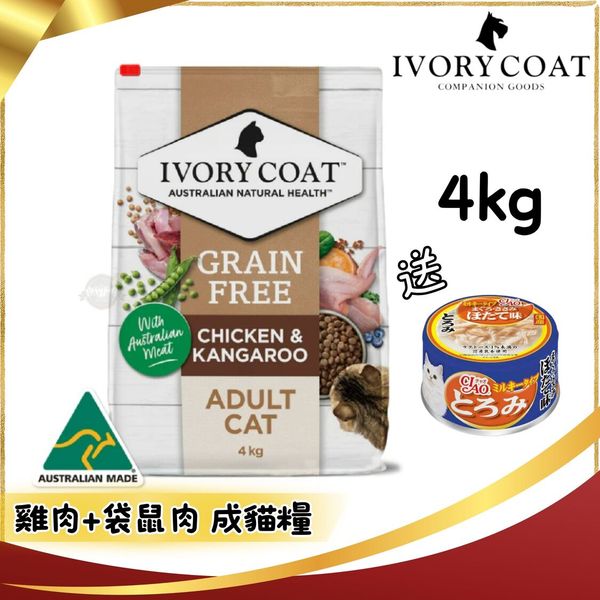 IVORY COAT袋鼠肉+雞肉椰子油 成貓糧 4kg | 送日本貓罐(隨機味)