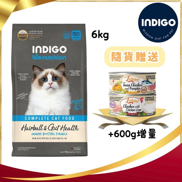 Indigo去毛球 天然有機益生菌貓糧 6kg | 送Liebhaber新品貓罐[兩罐裝]+600g增量裝