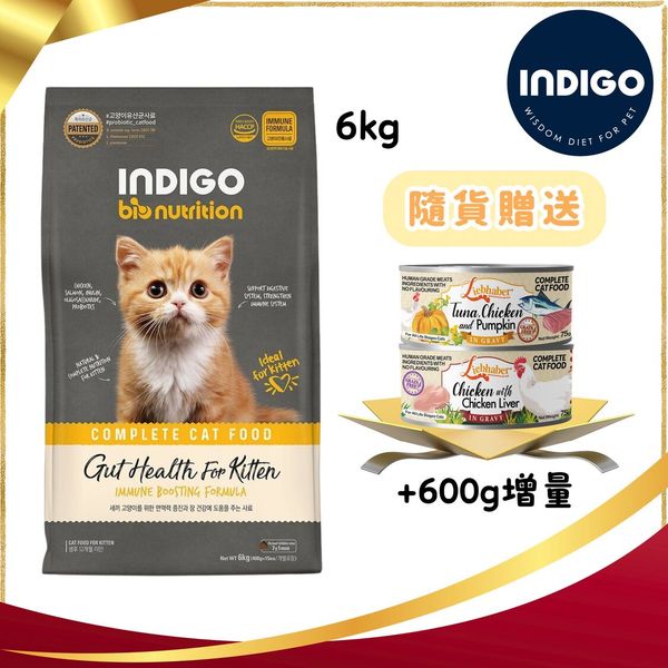 Indigo幼貓專用 天然有機益生菌貓糧 6kg | 送Liebhaber新品貓罐[兩罐裝]+600g增量裝