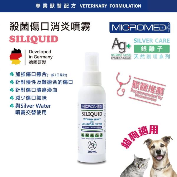 Micromed Vet銀離子傷口天然消炎噴劑(Siliquid) 100ml