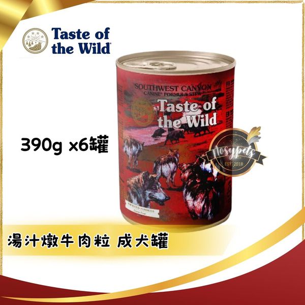 [近期優惠]Taste of the Wild無穀物湯汁燉牛肉粒 成犬主食罐 390g x6罐 | Expiry Date:20/2/2026